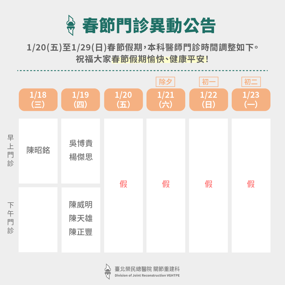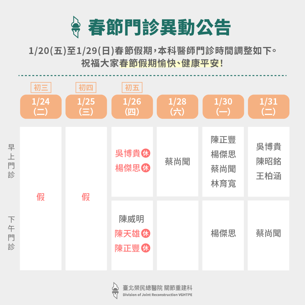 春節看診醫師:1/26(四) 陳威明院長 下午診